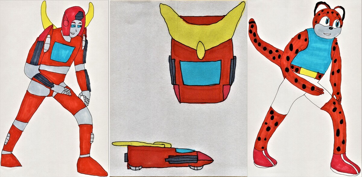 Hot Rod initially went to Mobius to film Alien Hunt!, but it turned out that Meteorfire was actually a magephobic Terrorcon named Sideways. After learning the truth of what he percieved to be his greatest failures, he rejoined the Autobots and became a much more level-headed soldier. His speed has helped the Autobots on numerous occasions. He’s currently the head of the Velocitronian Armed Forces and lives in Soldier’s Point in the Northern Track Sector of Velocitron’s mobile capital of Delta City. While Override races through the sands of Velocitron, Hot Rod is a total city boy and races around them instead. Because of meeting an alternate future of himself where he inherited the Matrix, he’s affectionately called Rodimus to his friends. If the Author has his way, he won’t be running to any more goals.
